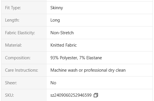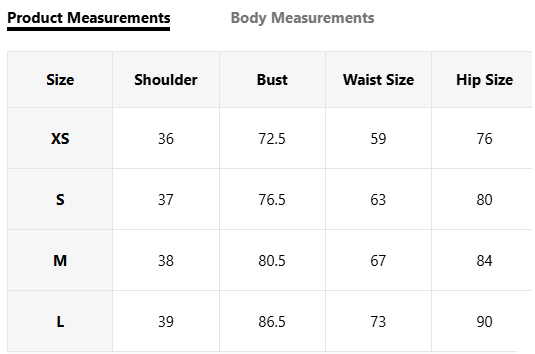 Sizes: XS