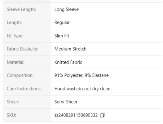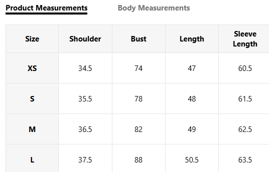 Sizes: XS